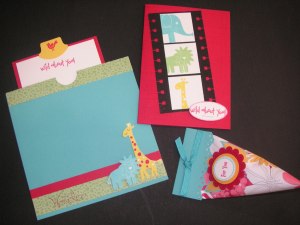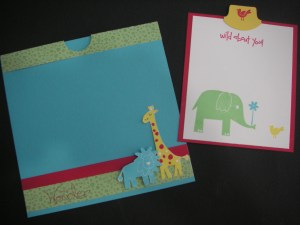 I thought I would show you these projects from a workshop last week. As many of the guests had young children, or grandchildren I wanted to show some projects they can make for or with their kids. I have to say, the young ones that were there enjoyed it!! It is using the fun set ‘Wild About You’.