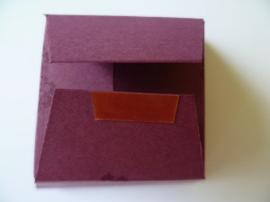5. Assemble your box together now. Add Sticky Strip to the other tab and adhere the box together. On the bottom of the box fold in 2 opposite tabs. Then place Sticky Strip to the very top edge of one of the other tabs and adhere these 2 tabs together.