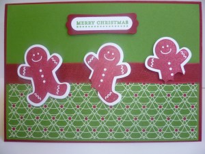 Isn’t it cute?? I have used the set ‘Scensational Season’. This was made in Gumball Green and Cherry Cobbler and the ‘Be of Good Cheer’ DSP. I have “munched” the gingerbread with the scallop circle punch.