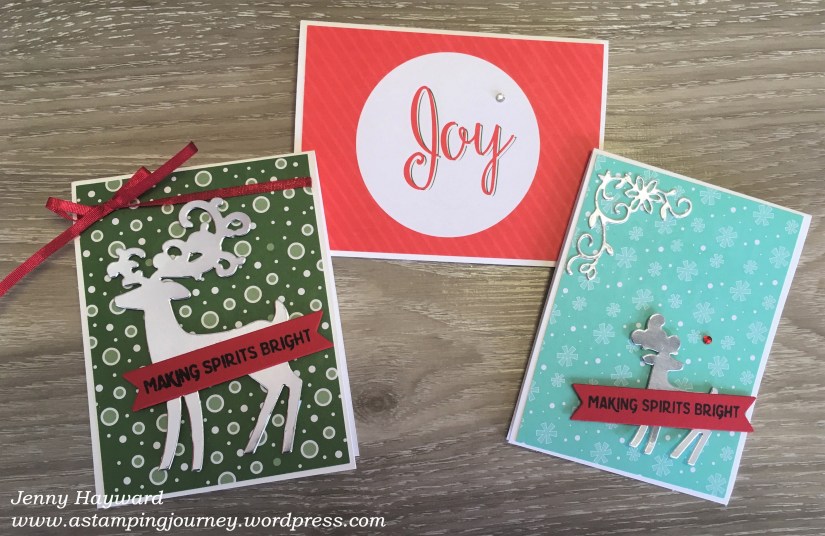 You can simply adhere them to a base card or layer 2 of the cards together (like I have done with the Candy Cane card).  I stamped on the sentiments in black on these larger cards.  Alternatively you can add a few extra embellishments (like I have done with the smaller reindeer ones).  The cards come in a couple of different sizes.  The larger ones are 10.2 x 15.2cm, the smaller ones are 7.6 x 10.2cm.
