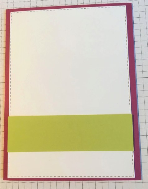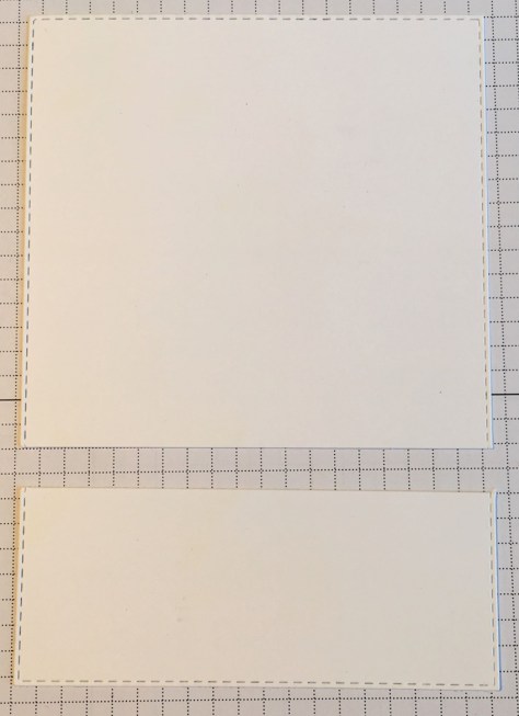 Cut your card with the Largest Rectangle Stitched Framelit. On your card piece, cut off a section at the bottom. This could be any amount you like to work with your card design. I cut this one at about 3 1/2 cm.