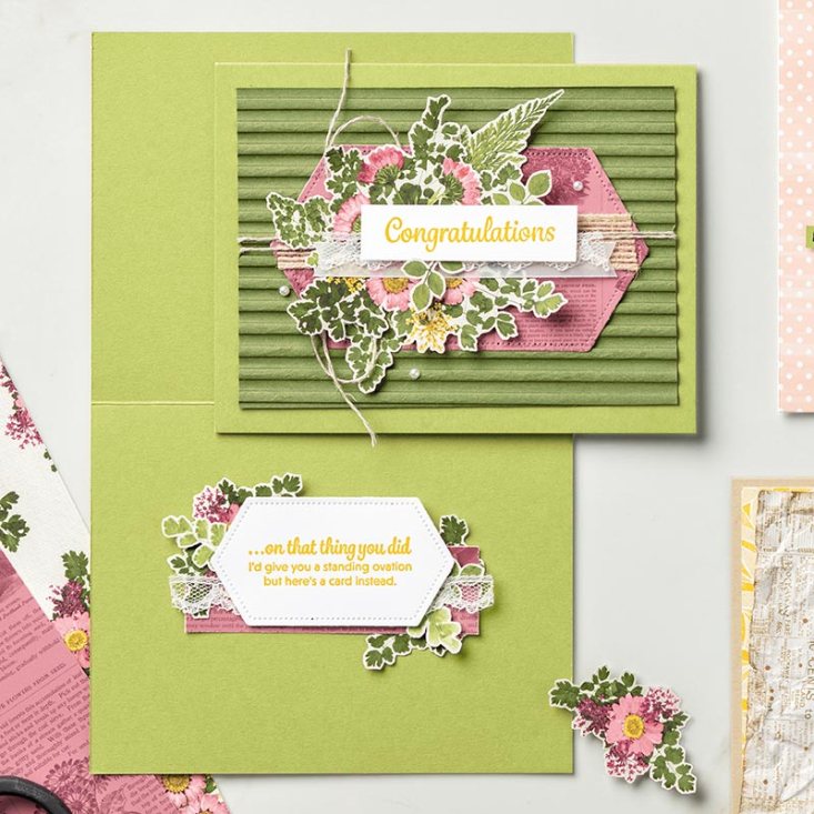 In the Suite it includes the Pressed Petals Journal.  I have only just noticed the embossed cover. Isn’t that gorgeous??  You can decorate the Journal with some simple decorations.  Not too much or you cover the lovely embossing. On this one it is using the Pressed Petals Specialty Designer Series Paper.