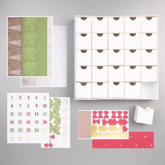 The kit contains the box elements and all the supplies to create 25 boxes.