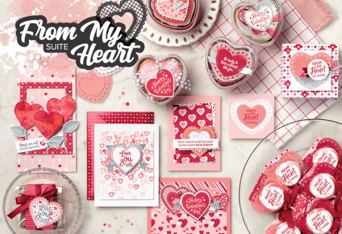 I may be a little late with this suite since it was Valentine’s Day on Friday BUT this suite can be used for other occasions. It’s a lovely one for weddings and even with the lovely sentiment in the stamp set it could be used for a special friend. If you love scrapbooking you might like these gorgeous products to add to a special page. So for Sunday Suites today let’s check out the From My Heart Suite.