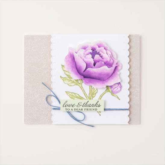 Here is a little closer look at the Prized Peony Bundle ($100.75 AUD) The stamp set has beautiful sentiments. You can stamp and colour the flowers or use the dies to build up a Peony flower.