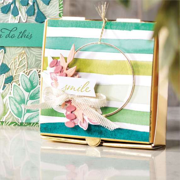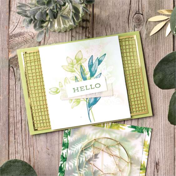Within this specialty pack are Pre-cut card fronts and greenery accents. Adhere a card front over a card base for a quick card, or easily add an accent to your projects. One side is white; the other side is gold foil. On the white side you can sponge or roller a colour on to co-ordinate with your project. In the pack are 6 sheets: 3 each of 2 single-sided designs