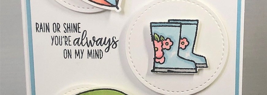You can find the Under My Umbrella stamp set in my store -> HERE. Don’t forget the Umbrella Punch too. That makes cutting the umbrellas out so easy. You do need to fussy cut the boots.