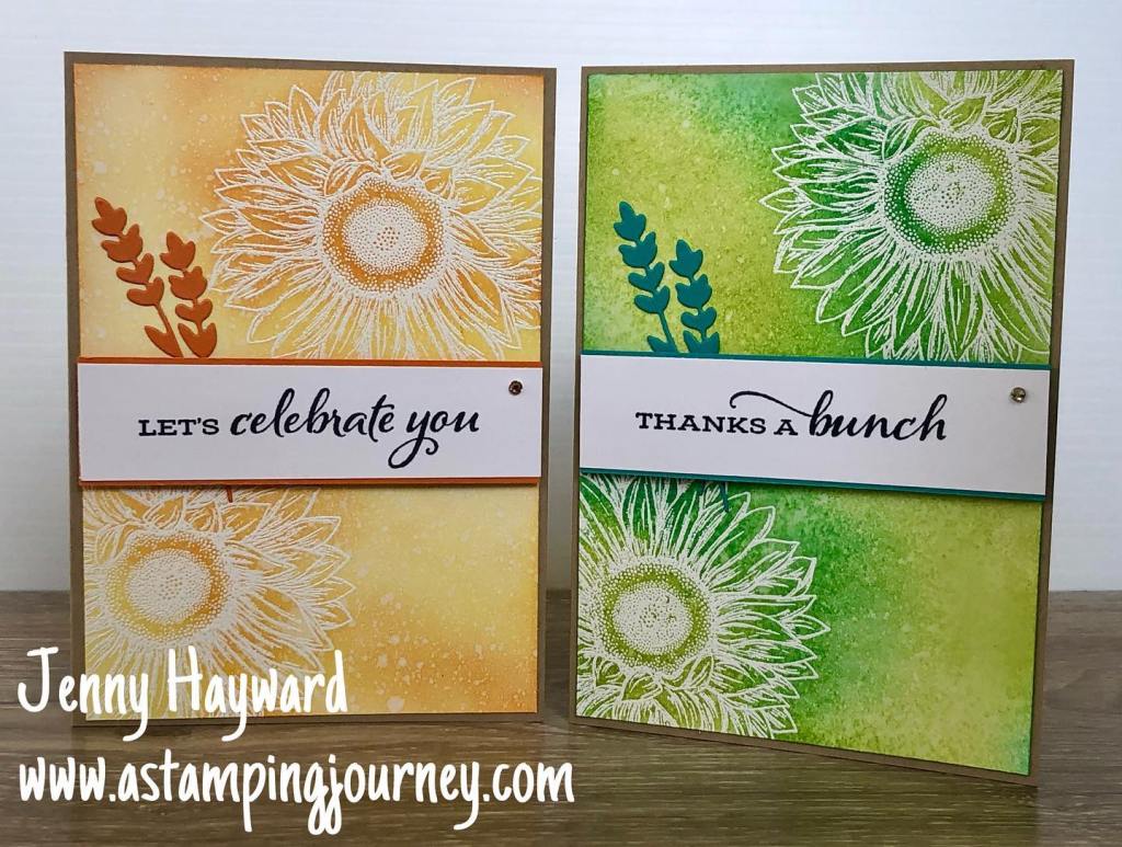 Last post I shared a video with the Emboss Resist Technique using the lovely Celebrate Sunflowers stamp set. I thought I would share the second card with you that I showed right at the end. Hope you caught that one.