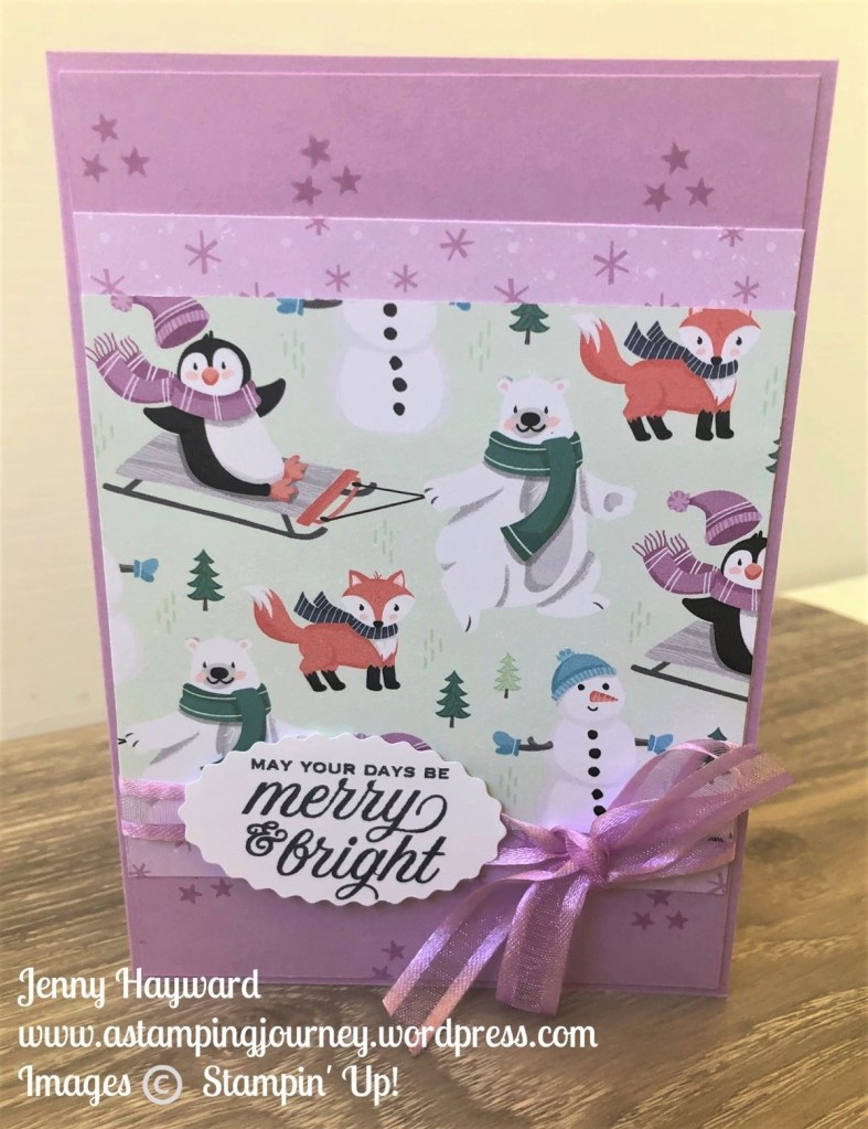 Another quick card using the Penguin Playmates Designer Series Paper. This one in Fresh Freesia. The sentiment is from the Tidings and Trimmings stamp set.
