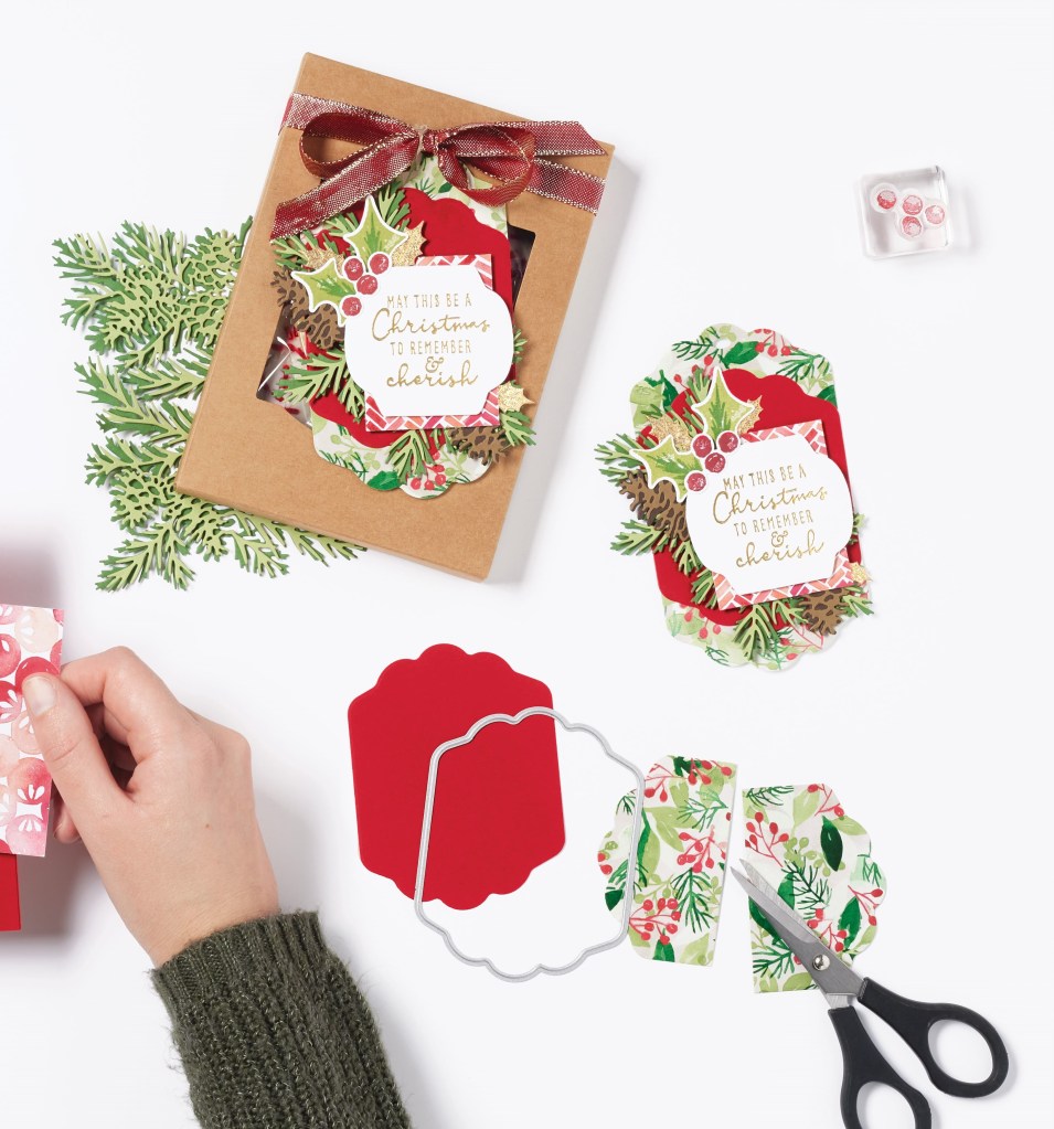 This is what Stampin’ Up! have done in the tag on page 3 of the Mini Catalogue with the Christmas Season bundle and the Painted Christmas Designer Series Paper -(and it’s a gorgeous tag they have created too).