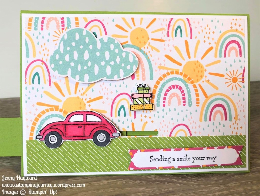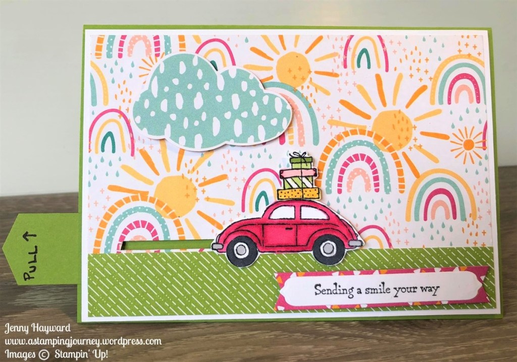 Here is the card for you showing the Slider. I also used the Sunshine and Rainbows Designer Series Paper that is a Sale-A-Bration choice.