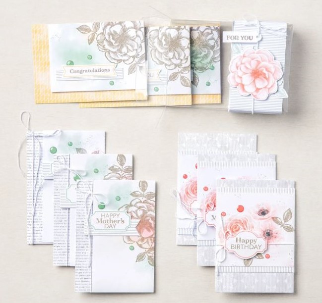 These are your finished cards. The kit makes 9 cards: 3 each of 3 designs.