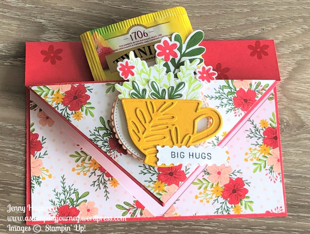 I used the Tea Boutique Collection for this card. Quite an appropriate one to include a Tea Bag in the pocket.