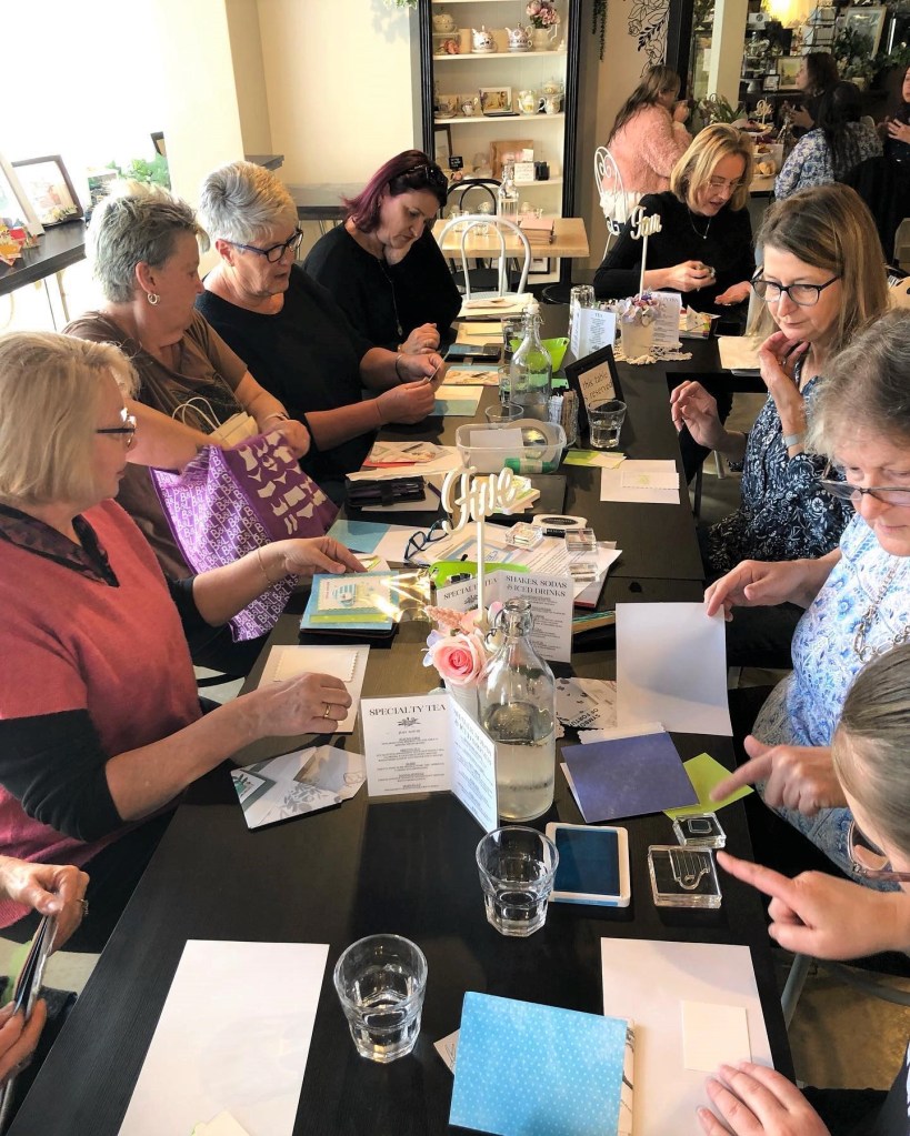 We had a large group of excited crafters. The projects were around the Tea Boutique Suite. Very apt for this venue. 🙂
