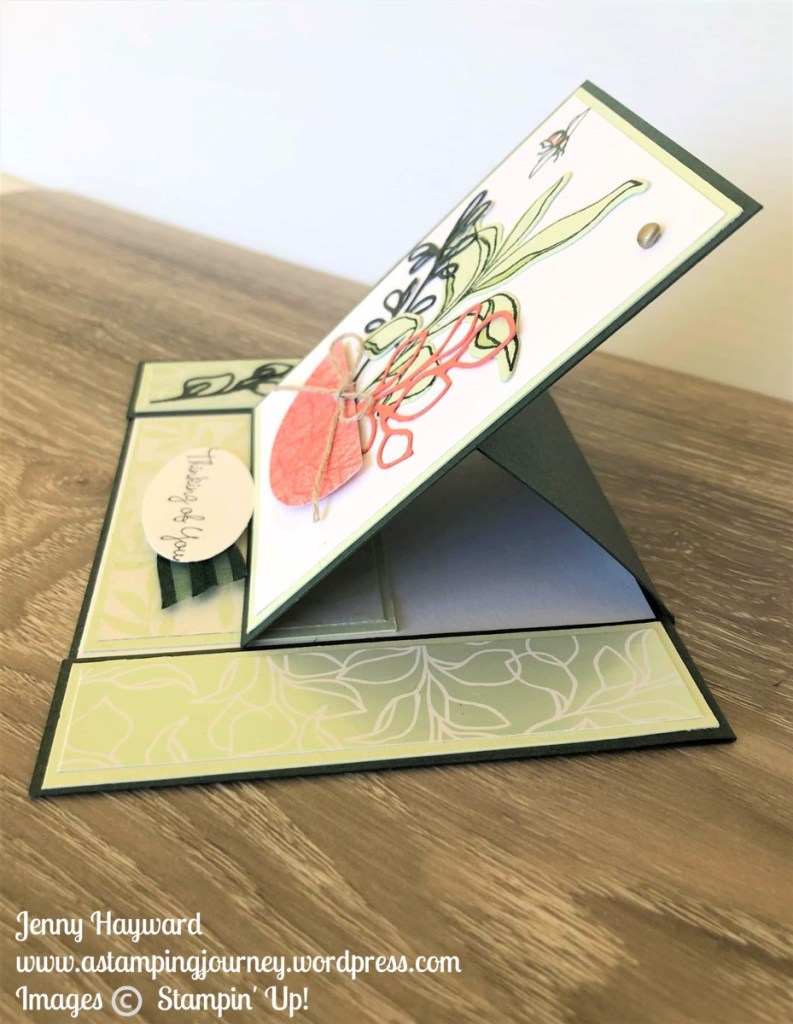 I love making Easel Cards. I love this idea too. This is a Split Easel Card. It’s very easy.