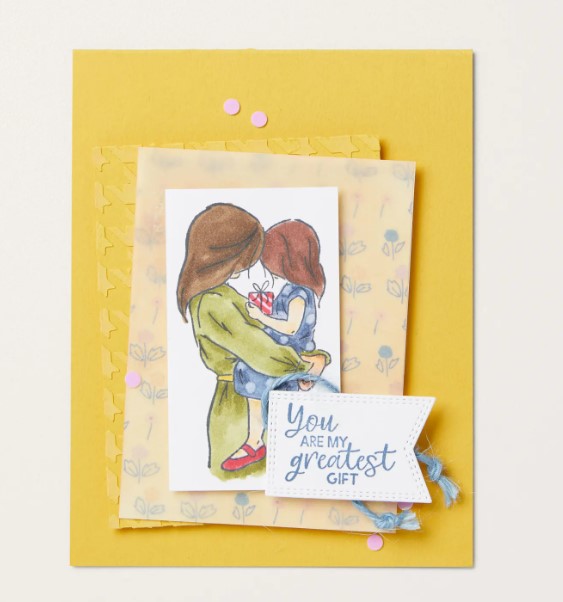 These have both been coloured with the Stampin’ Blends. The Greatest Gift card has a background using the Abundant Beauty Decorative Masks. The Texture Paste has been coloured with the Crushed Curry Reinker.