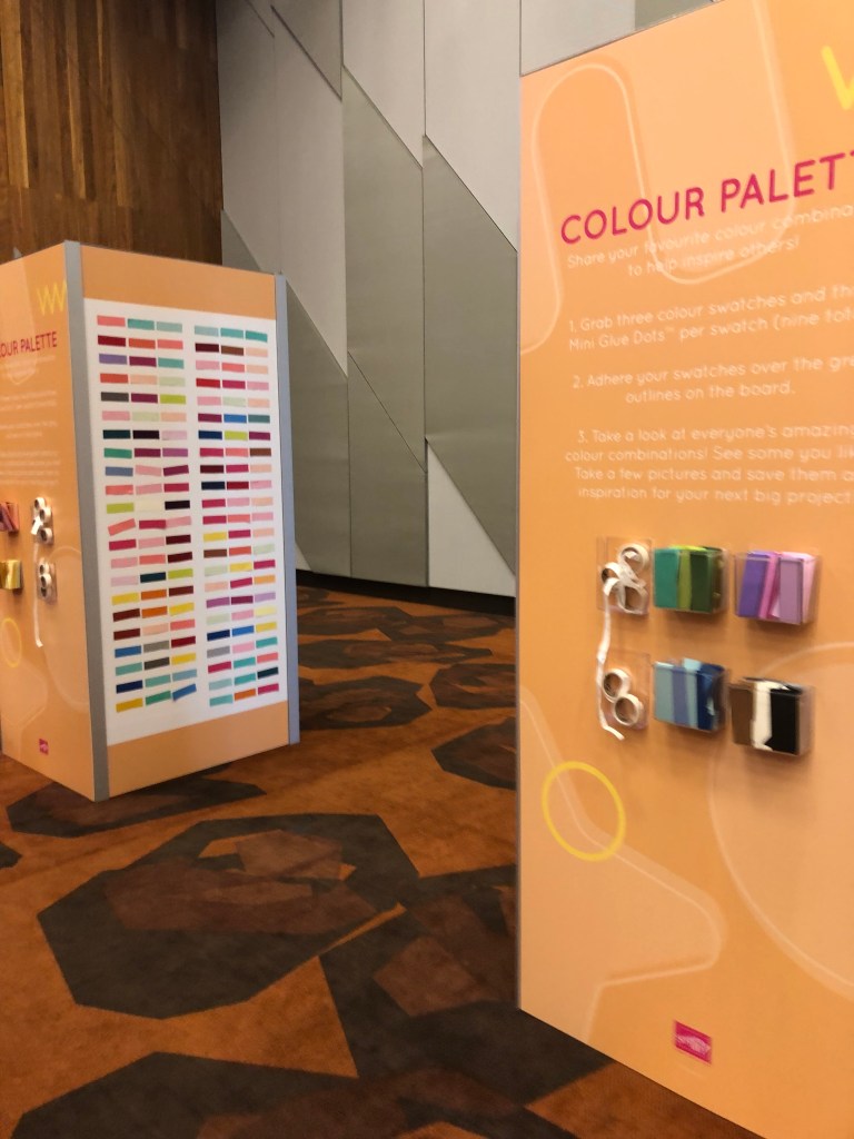 There was a Product Playground to see some new products. I loved the Colour Palette Walls. You had cardstock pieces and could add a Colour Combination to the wall with Glue Dots. I did take photos of all the panels and will have to go through them all to see the combinations.