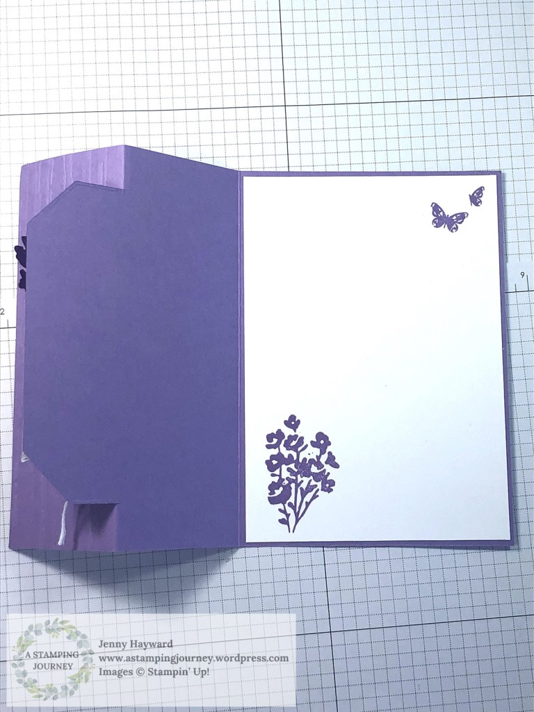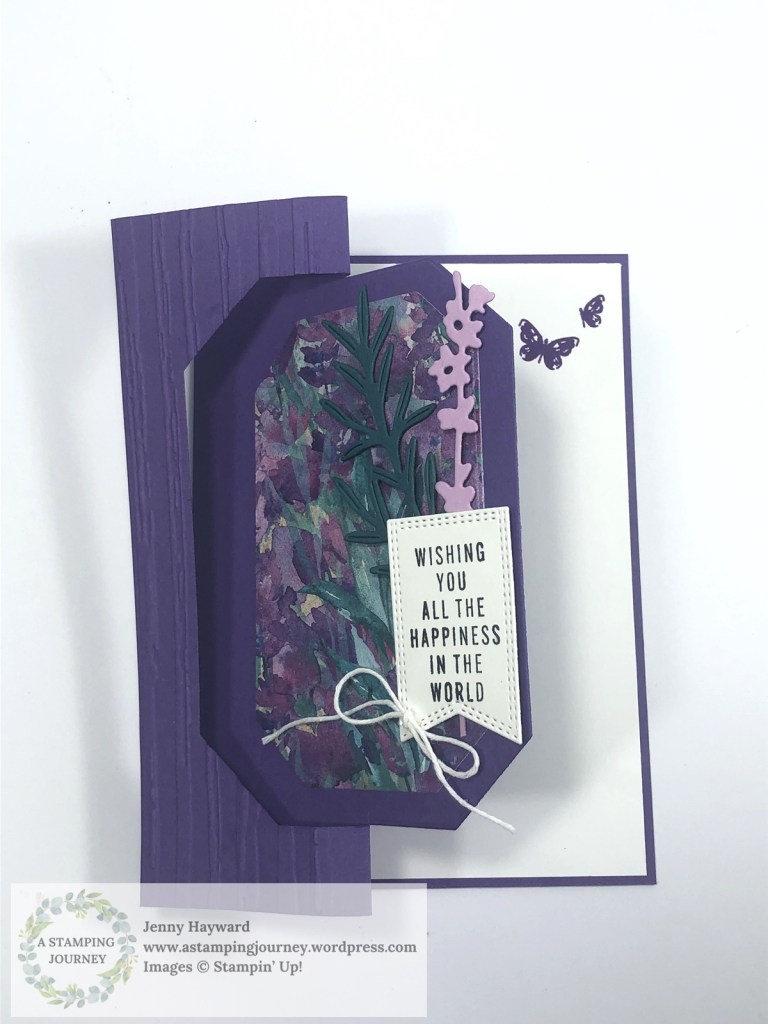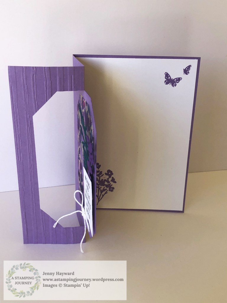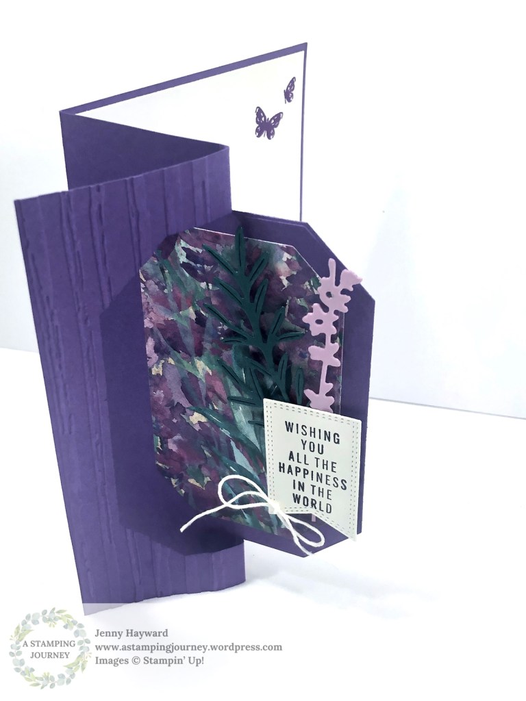 The Gorgeous Grape and the Highland Heather version uses the Perennial Lavender Designer Series Paper with the Painted Lavender Dies. The Berry Burst version uses the Delightful Floral Designer Series Paper with the Bough Punch. The sentiment for all 3 is from the Translucent Floral Stamp Set.