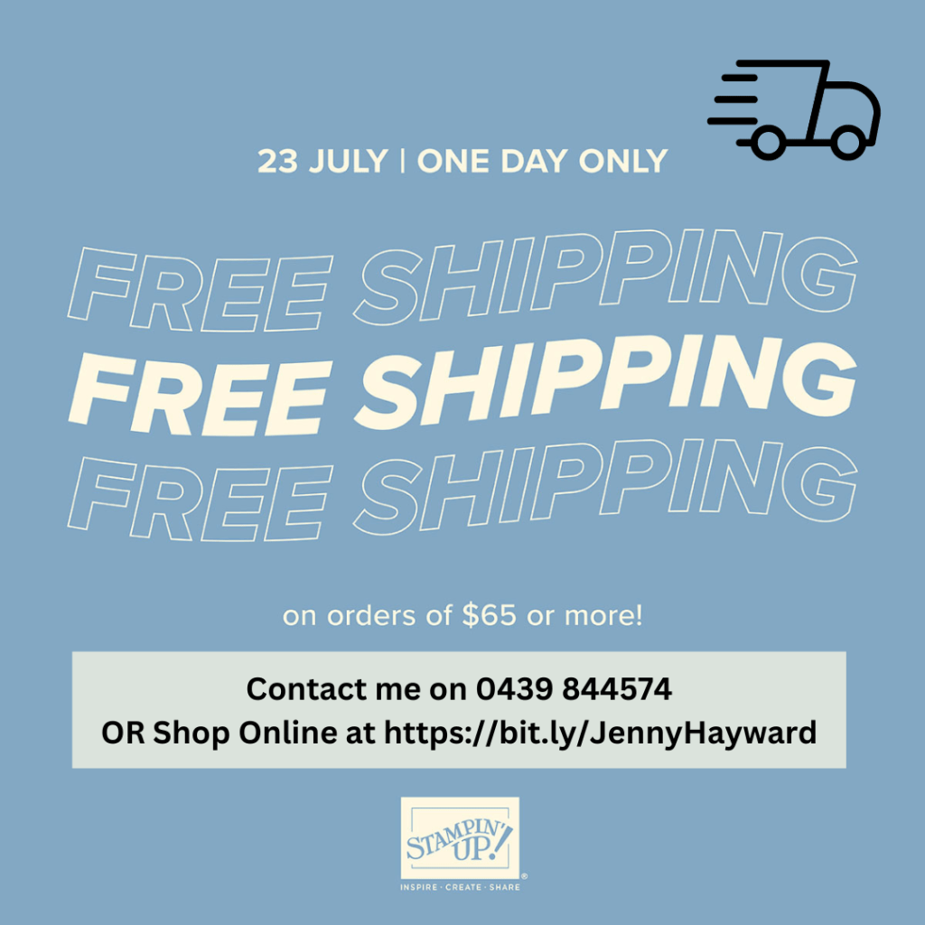 News just in – Stampin’ Up! has announced Free Shipping on orders for Tuesday 23rd July.