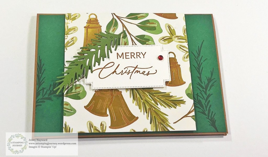 I used the Season of Green and Gold Specialty Paper. Also the Golden Greenery Stamp Set and the Greetings of the Season Stamp Set. It makes a special Christmas card to send. This could be used for so many different occasions though.