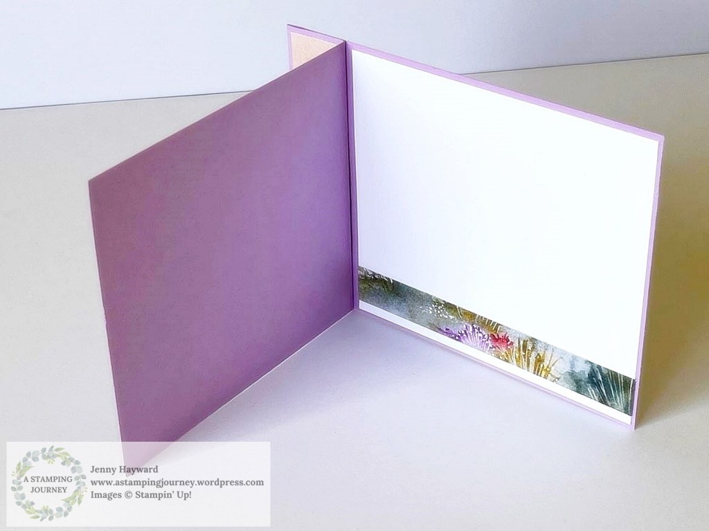 This one is created with the Thoughtful Journey Paper. The sentiment is from the Bright Borders Stamp Set and using the To The Point Label Punch.