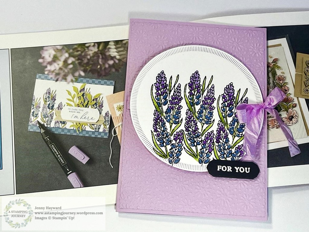 Here’s a closer look at the card. I used the Night of Navy Light Stampin’ Blends and the Light and Dark Highland Heather Stampin’ Blends.