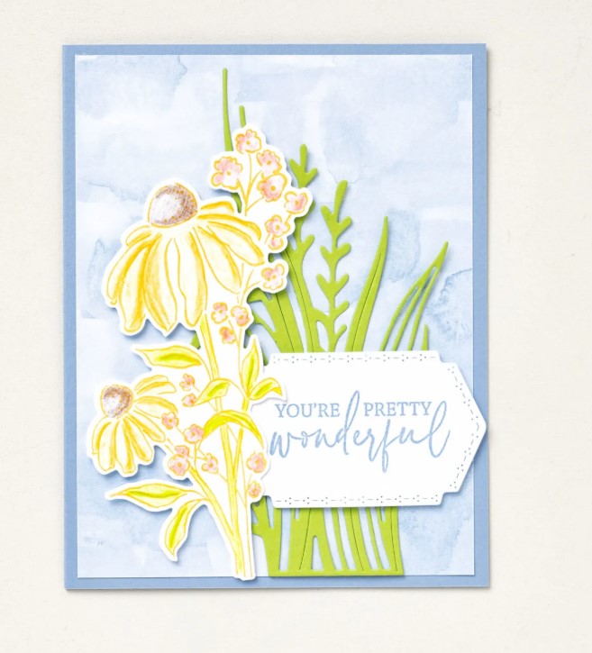 The paper has a number of different Mixed Media techniques in the paper. According to Stampin’ Up! it includes gouache, watercolour, and digital art. It’s sounds all impressive and looks even more impressive. I had to look up gouache. This is a water-Based paing that is opaque and has a matte finish. It’s made from natural pigment, water, and a binding agent like gum arabic or dextrin. Gouache is similar to watercolor but is more opaque and less transparent.