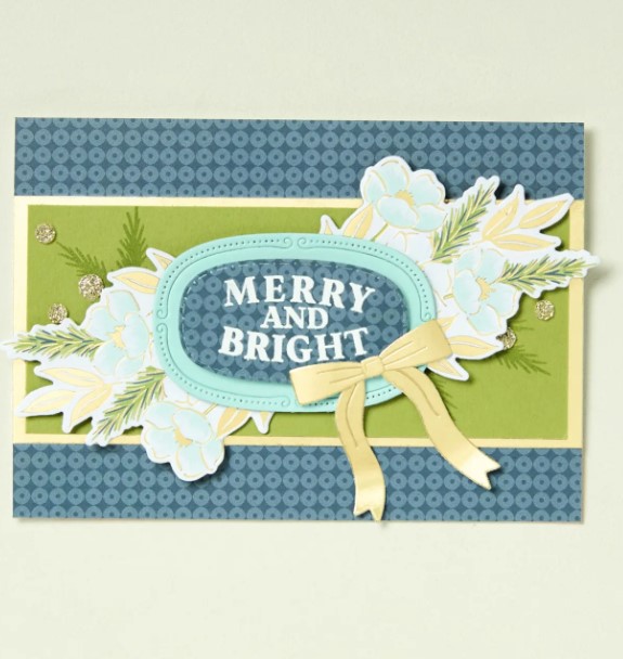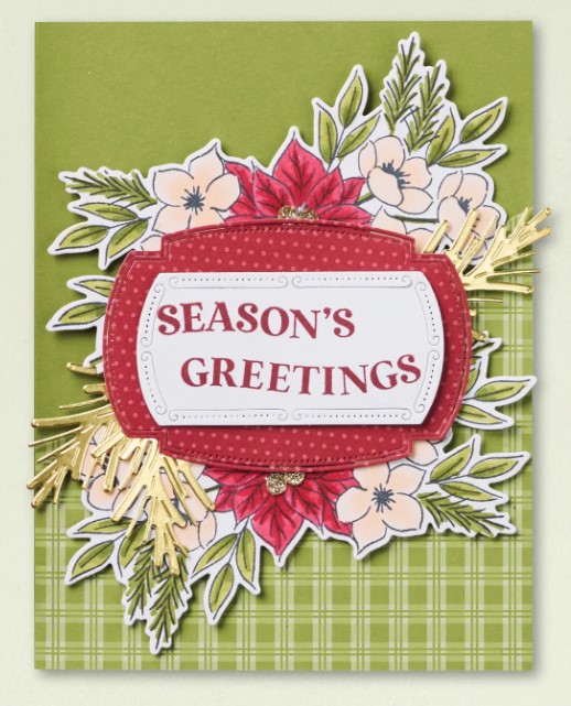 The Traditions of Christmas Specialty Paper has touches of Gold through it which is really striking. It has the classic Christmas flowers and leaves like the Poinsettias and Holly. The paper is 12″x12″ with colours of Cherry Cobbler, gold, Old Olive, Pool Party, Real Red, Secret Sea.