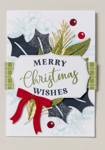 The Christmas Greenery Bundle contains the poinsettia and greenery stamps and has coordinating dies to diecut the images plus a number of different shaped leaves to create Christmas floral arrangements.