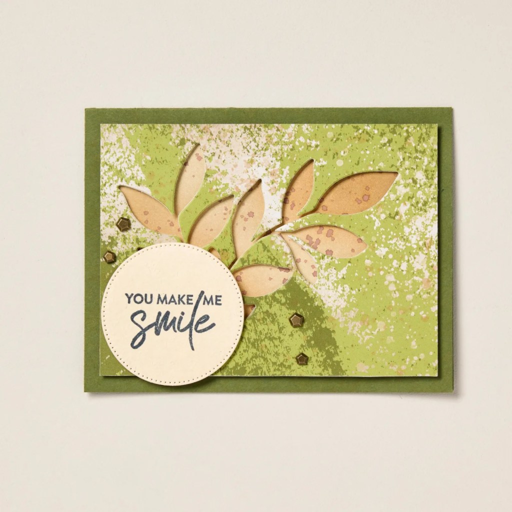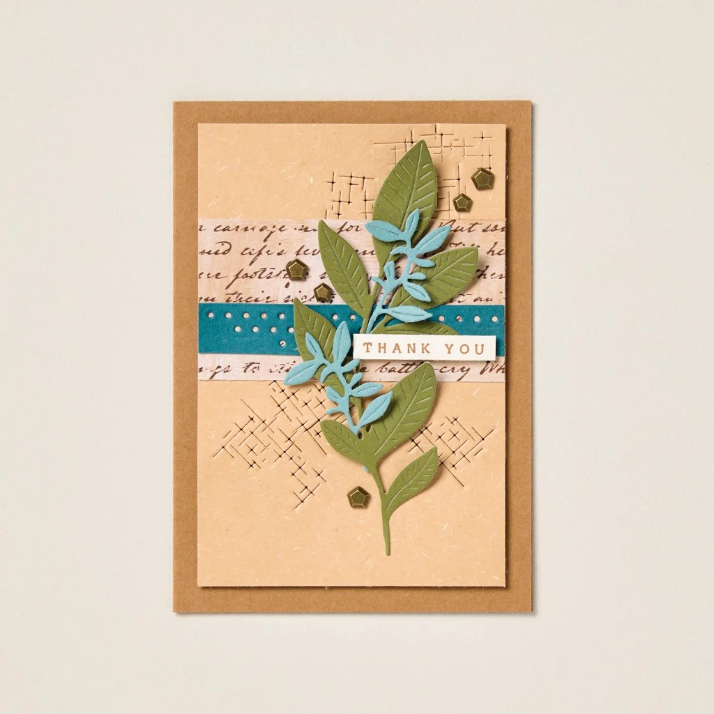 The Nature’s Symphony Bundle includes stamps and dies that cut out leaves and sprigs. Some of the dies have little well as peek-through patterns that adds that extra beautiful detail to your projects. The versatile sentiments and leafy designs are great for crafting for any occasion – including those male cards…
