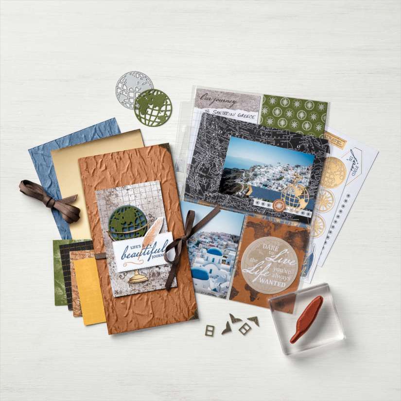 This suite is a great one to capture those travel memories with the “world” images within it. Not only in the papers but also the World of Good Memories and More cards. The sentiments in the Beautiful World stamp set are great for those pages too.