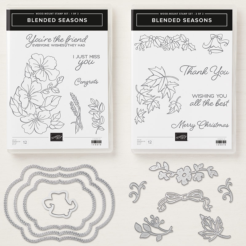 Here is the Blended Seasons stamp set and the matching Stitched Seasons Framelits.
