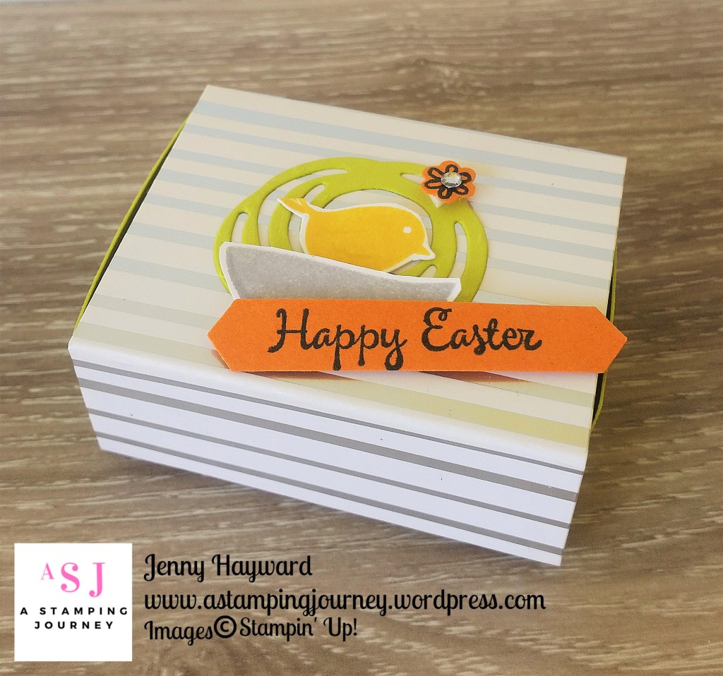 Stamp the bird in black on scrap white card and cut it out with the matching Framelit from the set. Stamp the sentiment on to Tangerine Tango card and cut with the Oval from the Stitched Shapes Framelits. Raise both the bird and the sentiment off the card with Dimensionals.