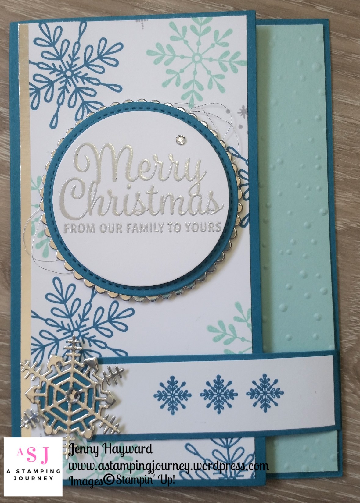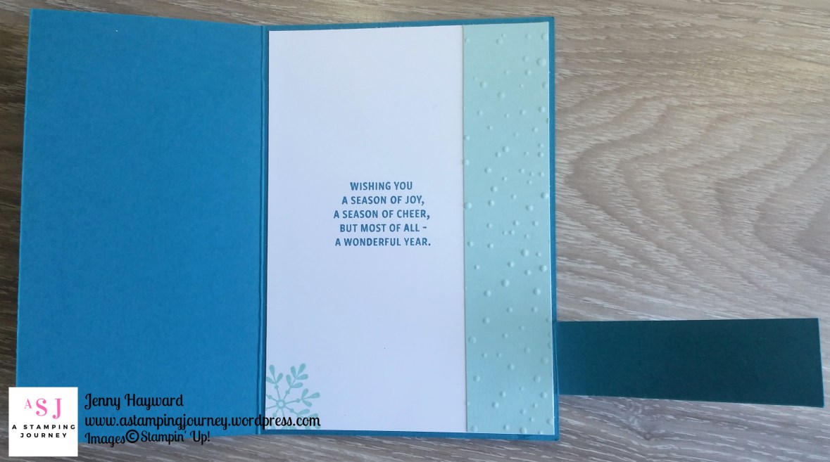 I have used the Snowflake Sentiments stamp set found on page 35 of the Holiday Catalogue and my favourite Christmas colour combinations of Island Indigo and Pool Party.