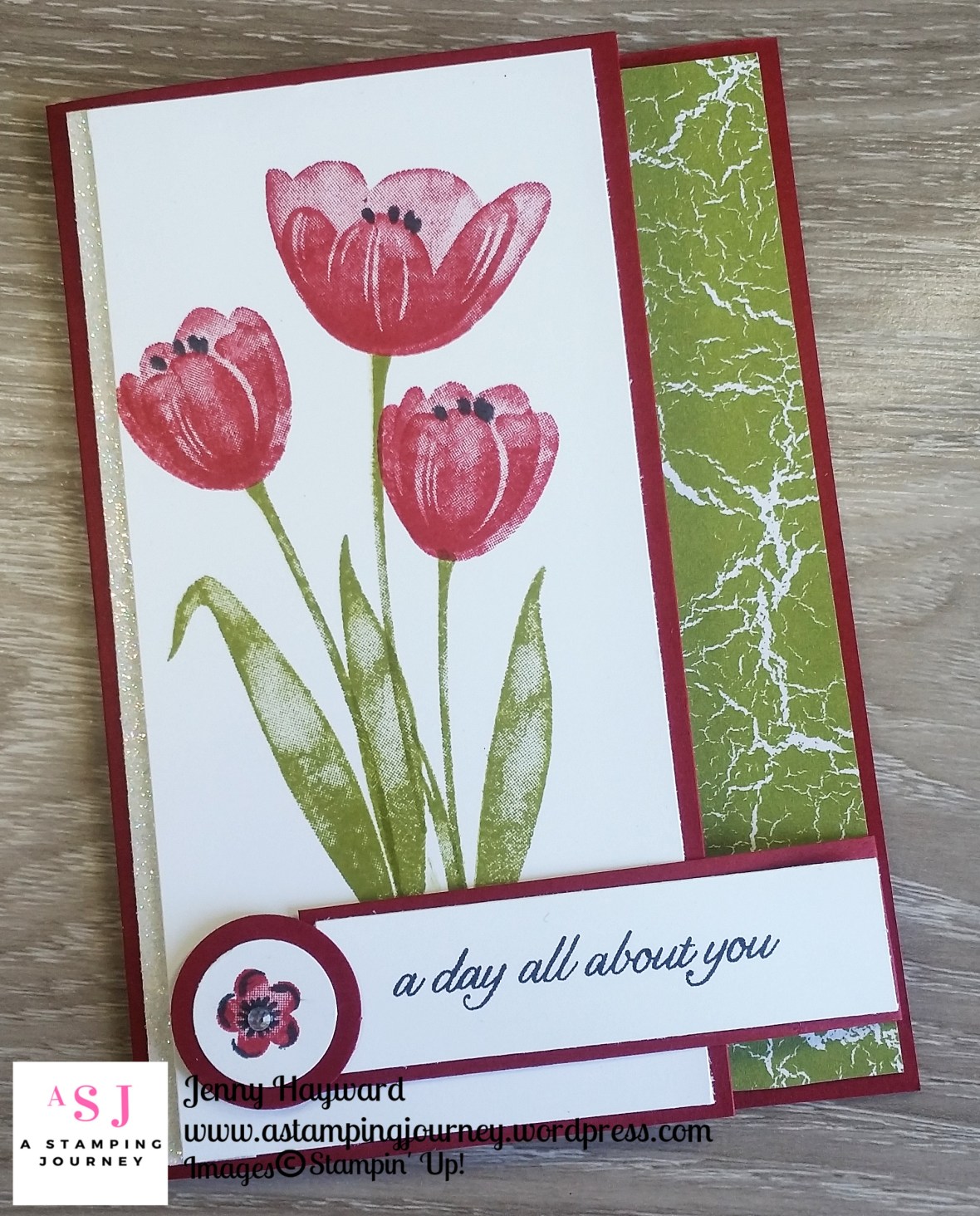 Yesterday I shared a Christmas Latch Fold card. Today I have another version using the Tranquil Tulipsset. OK, I did this card first and then realised for the Blog Hop that it was for the Holiday Catalogue. I thought I would share it with you today and give you the tutorial for it. 🙂