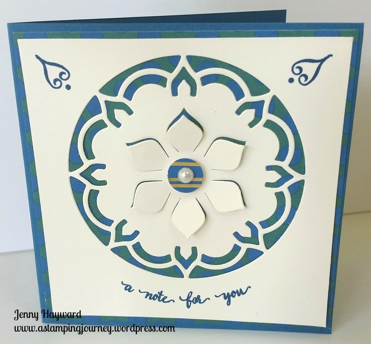 While I am waiting for my new Incolors to arrive I thought I would play with some different colours with the Eastern Palace suite. This time I have gone for a softer colour combination of Pool Party, Smoky Slate and Island Indigo.