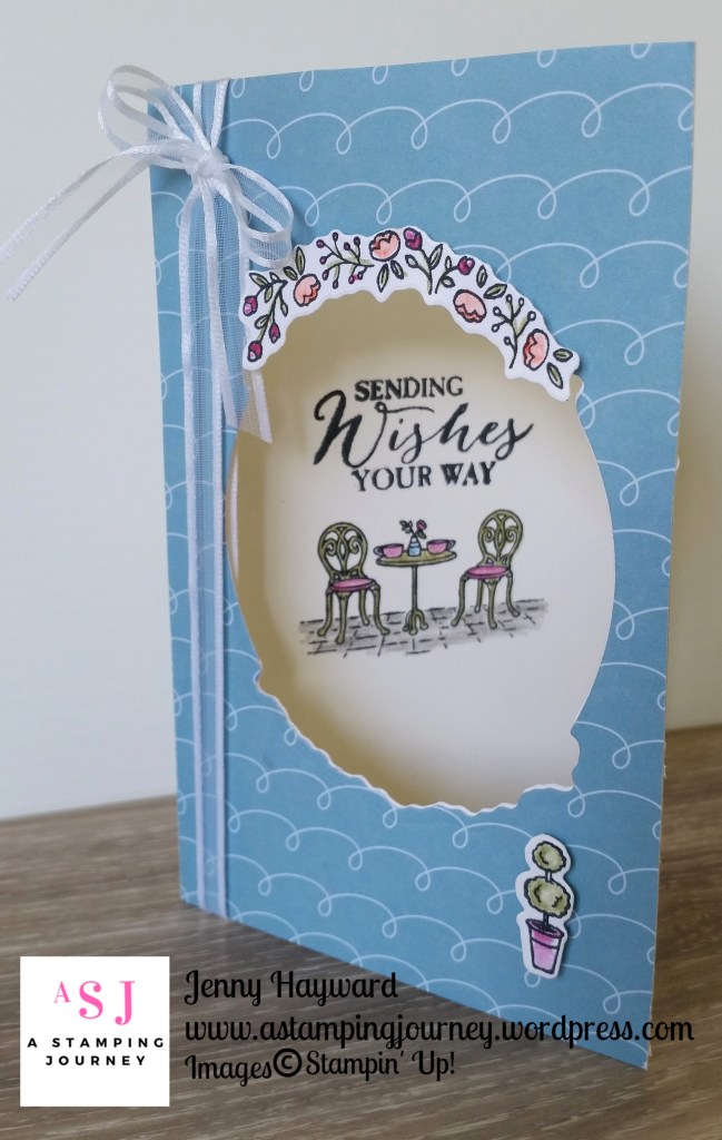 Have you seen the Charming Cafe Bundle in the Occasions Catalogue? I was quite taken with this bundle as I saw great new options when making your cards like the Tri-fold card it shows. So this bundle was one of the first on my order. I haven’t seen much done with this Bundle around so I thought I would share a few tips with using it.