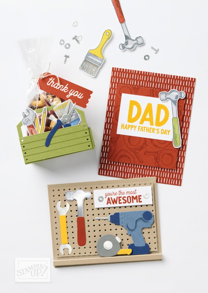 How cool is the Trusty Tools though. I love the Trusty Toolbox paper. That is one of the free choices for Sale-A-Bration. Some of the dies will diecut some of the tools.
