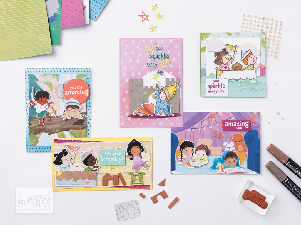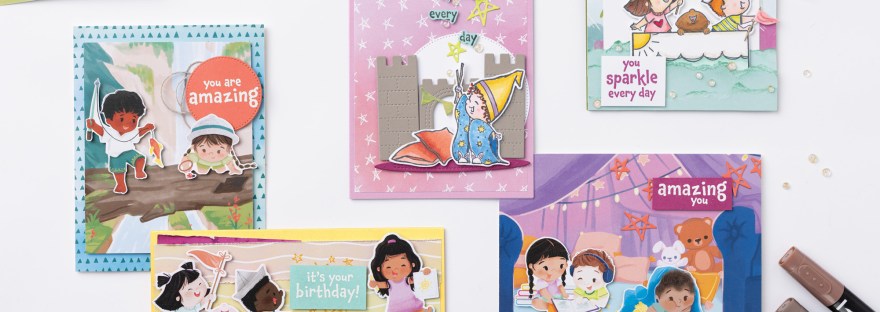 You can see with these cards above how great the paper works with the Stamp Set. They have prints to create background scenes or extra elements and Kiddies to add to your cards.