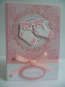I can finally show you this card. A friend who is also one of my downlines had a baby boy back in January. I have only got to see her recently so now I can show you the card.