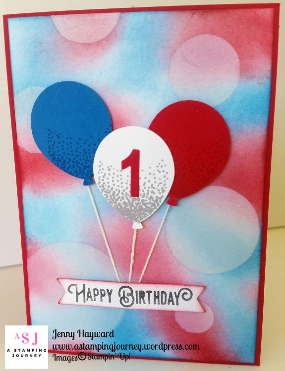 I was asked by a friend to make a special birthday card for her 1 year old grandson.  The birthday theme was Red, White, and Blue and bubbles and balloons and if I could incorporate those.  Or at least either the balloons or the bubbles with the colours.  My mind started ticking over.  What to do???