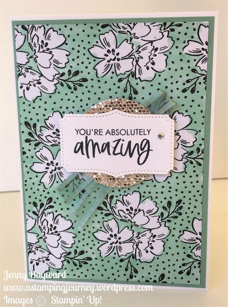 How cool though that the Soft Succulent ribbon matches so well. Add a little sparkle with the Be Dazzling Paper and you are good to go. 🙂