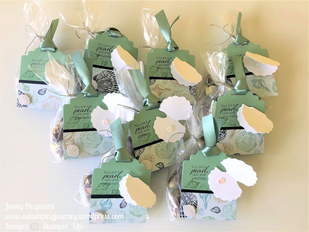I stamped the crab in Sahara Sand and coloured it with the Petal Pink and the Mint Macaron Stampin’ Blends.