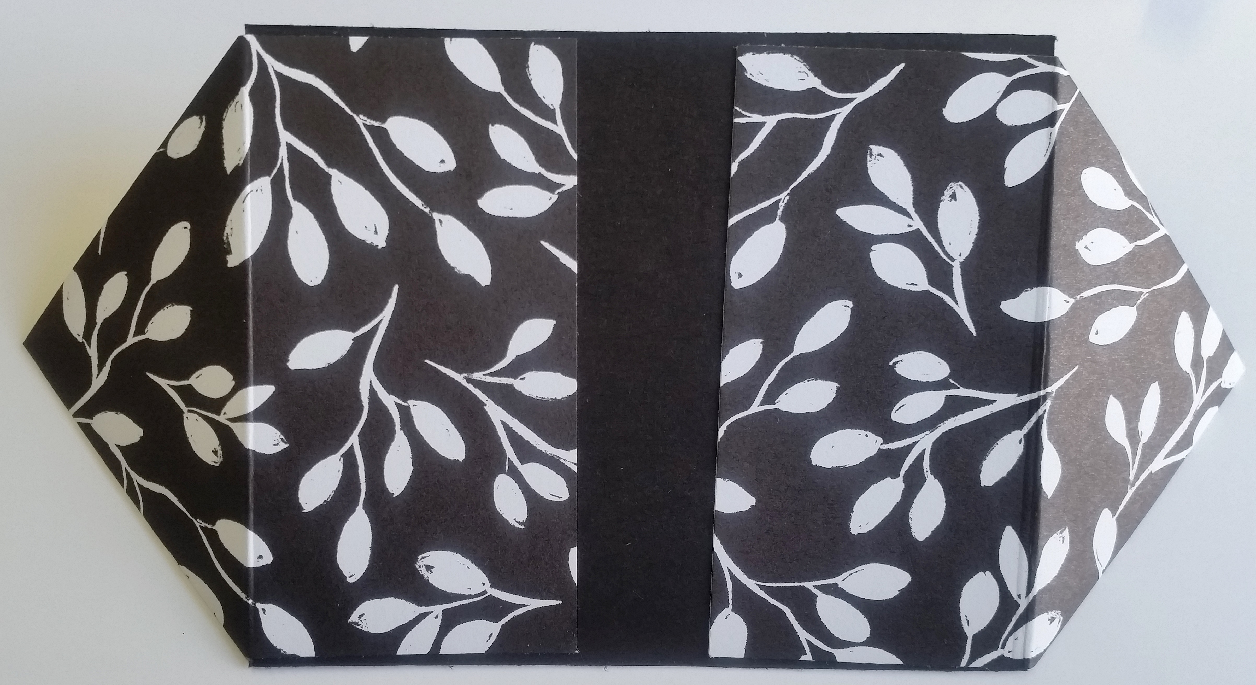 5. Now you can create the front and the inside as you like. I adhered the Designer Series Paper piece on the front. The Whisper White piece I stamped and adhered inside.