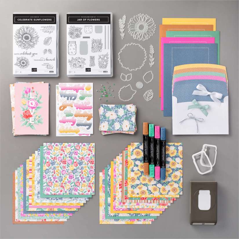 There are 2 different bundles within the suite. The Jar of Flowers and the Celebrate Sunflowers. Both of them co-ordinate with the other elements like the paper and the ribbon.