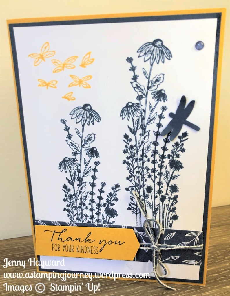 Another card with the Dragonfly Garden Bundle. I made this a little while ago so thought it was time to share it with you. This time though I stamped the daisies on the card and added some little butterflies buzzing around.