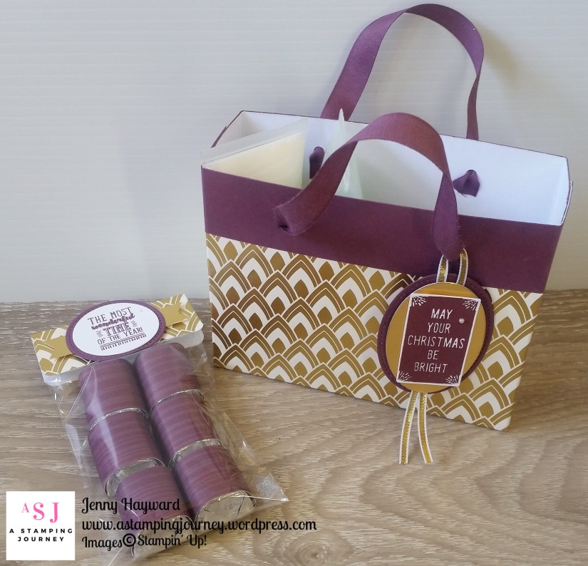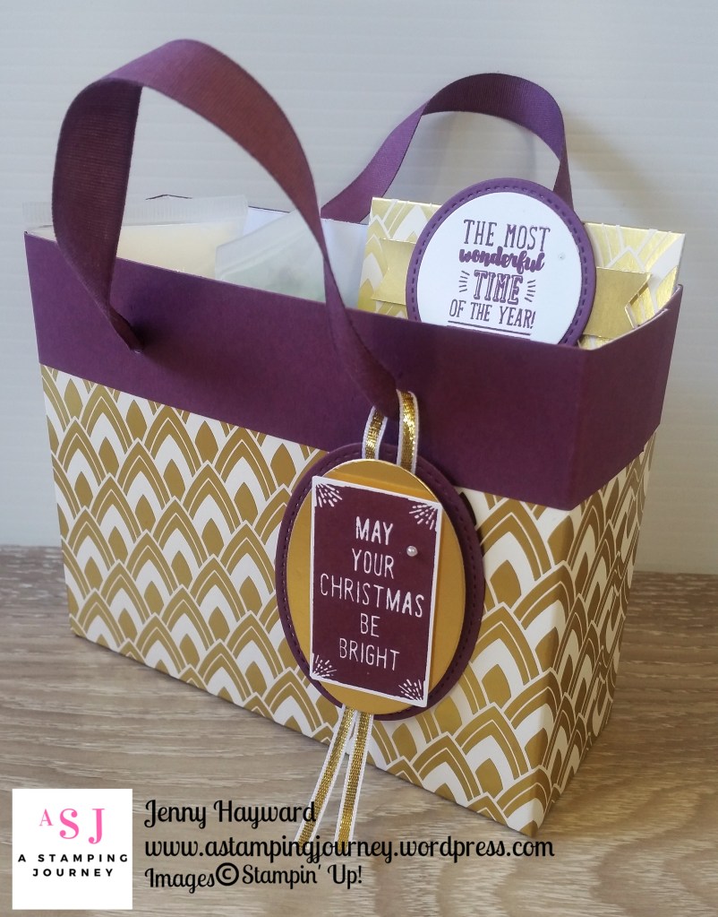 Just a note on the sentiment: I masked part of the sentiment from the Dragonfly Dreams set and inked it with versamark. After I stamped it on the Dapper Denim card I heat embossed it in gold. It was cut with the smallest framelits in the Lots of Labels Framelits. I added a few loops of the Gold Thread behind the sentiment.
