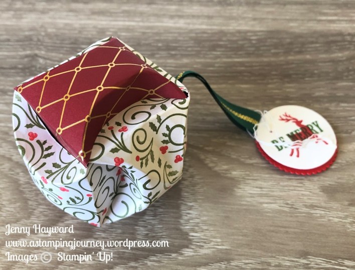 Then an origami ornament from Vanessa. I have seen these a few times recently. I have wanted to make one but as yet haven’t had a chance.