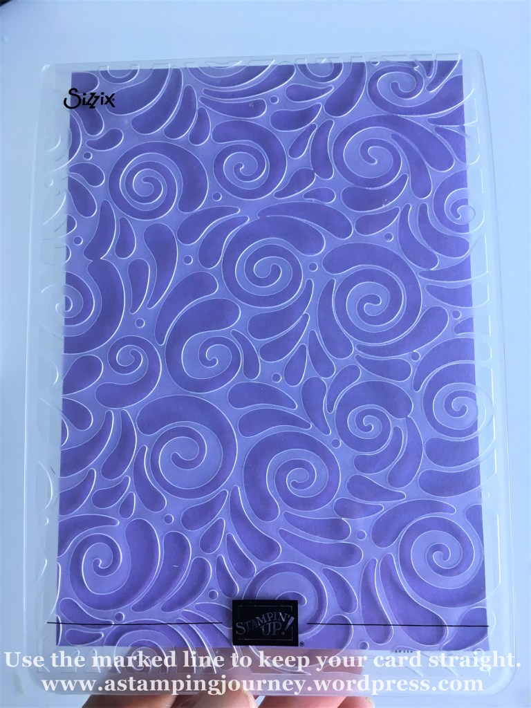 On the Timber 3D Embossing Folder ink was swiped over the inside of the folder. You can swipe over with the Ink Pad or use the Brayer with ink. Then add your Balmy Blue card mat and run it through the machine. This adds an extra dimension to you card and highlights the embossed detail.