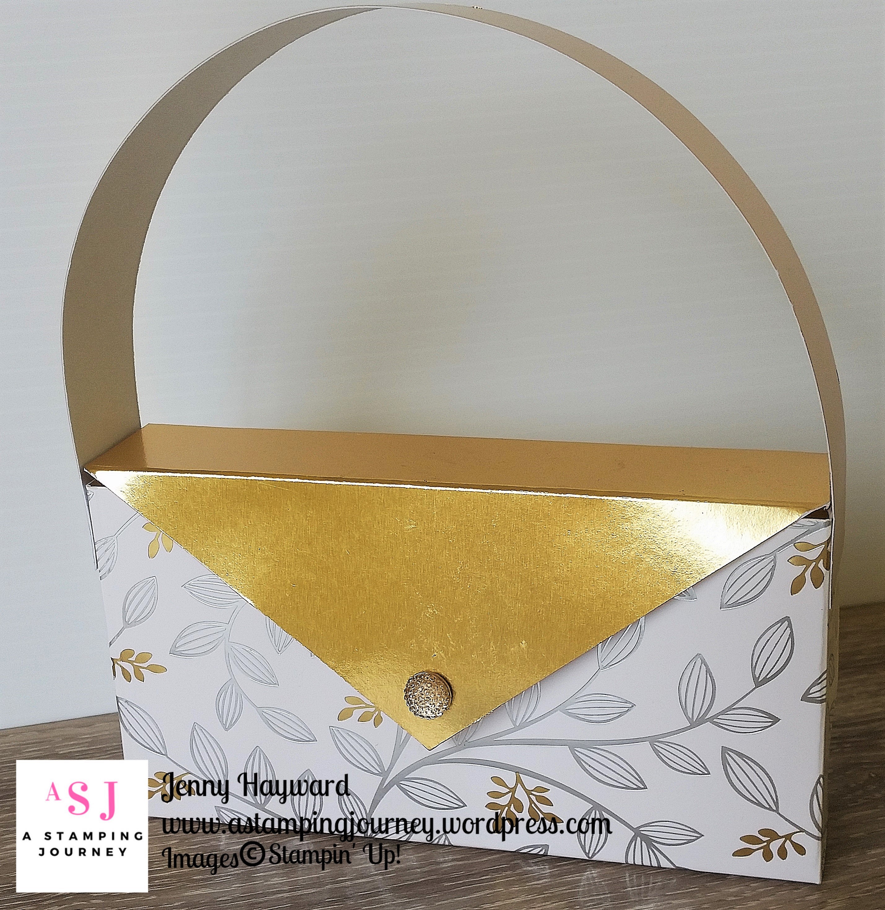 I am loving the gorgeous new Springtime Foils Specialty Designer Series Paper that has just become available for the second release for Sale-A-Bration last week. You have already heard me go on about it.  🙂  Anyway, I thought a CLASSY CLUTCH BAG AND CARD was in order with this gorgeous paper!!